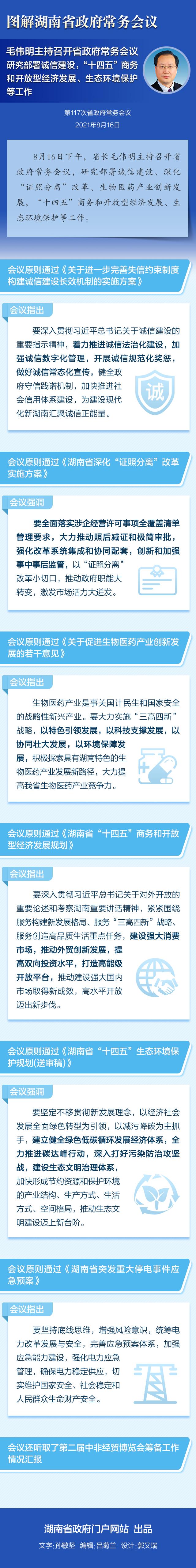 8月16日下午,省长毛伟明主持召开省政府常务会议,研究部署诚信建设、深化“证照分离”改革、生物医药产业创新发展,“十四五”商务和开放型经济发展、生态环境保护等工作。