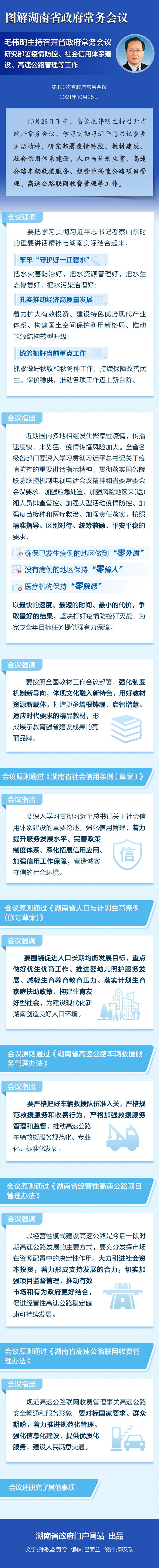 10月25日下午,省长毛伟明主持召开省政府常务会议,学习贯彻习近平总书记重要讲话精神,研究部署疫情防控、教材建设、社会信用体系建设、人口与计划生育、高速公路车辆救援服务、经营性高速公路项目管理、高速公路联网收费管理等工作。