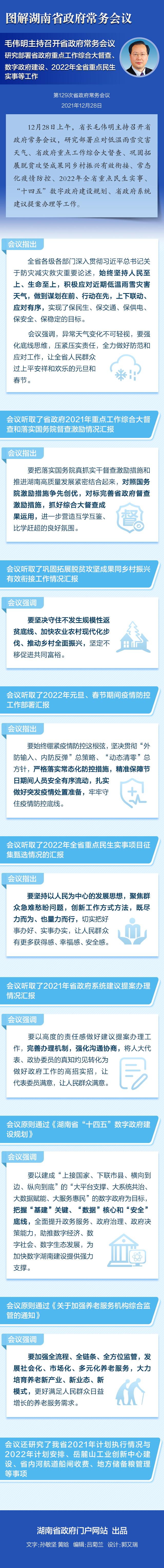 毛伟明主持召开省政府常务会议,研究部署省政府重点工作综合大督查、数字政府建设、2022年全省重点民生实事等工作